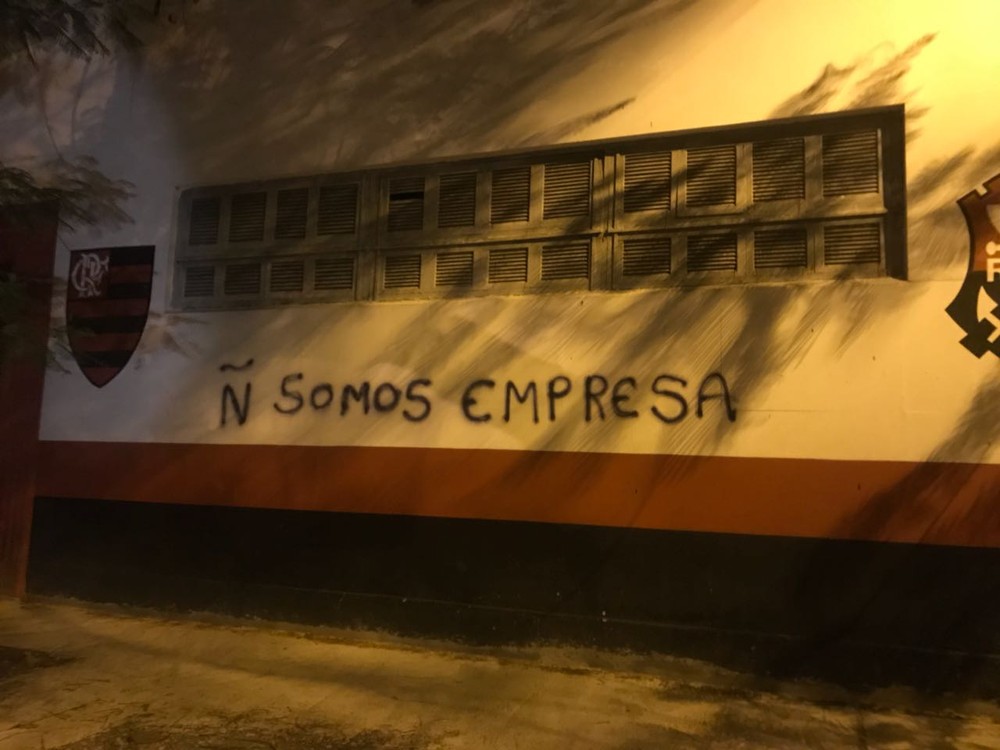 Ściany w Gávea zostały zdewastowane w środową noc, krótko po tym, jak Flamengo zremisowało z Santa Fe na Maracanie w ramach 3. kolejki Copa Libertadores. Główna krytyka dotyczyła się postawy zespołu oraz niektórych zawodników oraz władz. Głównymi celami byli prezydent Eduardo Bandeira de Mello oraz dwaj pomocnicy Diego oraz William Arão.