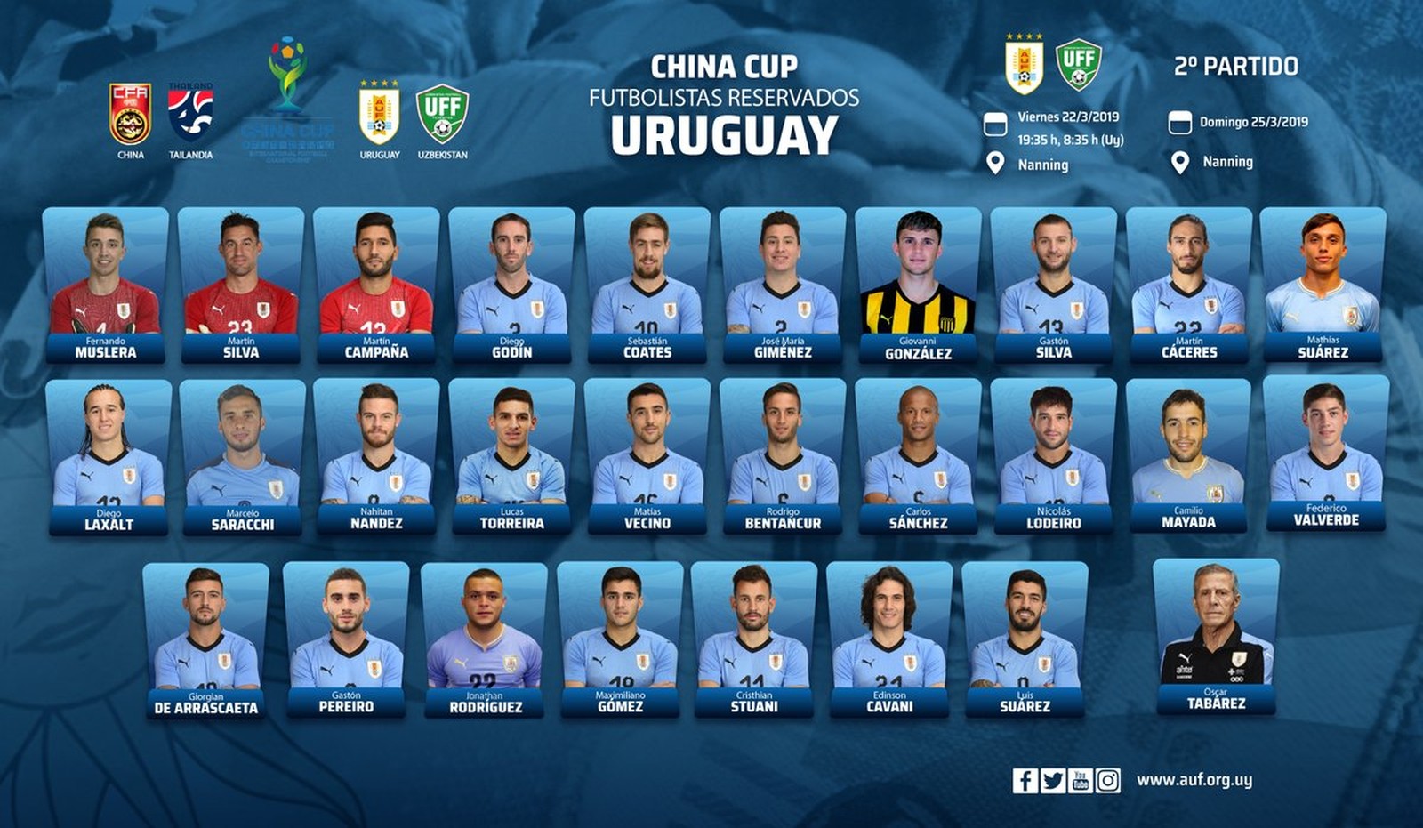 Urugwajska federacja zastrzegła jednak, że ostateczna lista powołanych zostanie potwierdzona dopiero na kilka dni przed wylotem do Chin. Sztab szkoleniowy i piłkarze grający w ojczyźnie mają udać się tam już 15 marca. Duża liczba powołanych zawodników pozwala selekcjonerowi Oscarowi Tabárezowi na spore możliwości manewru.