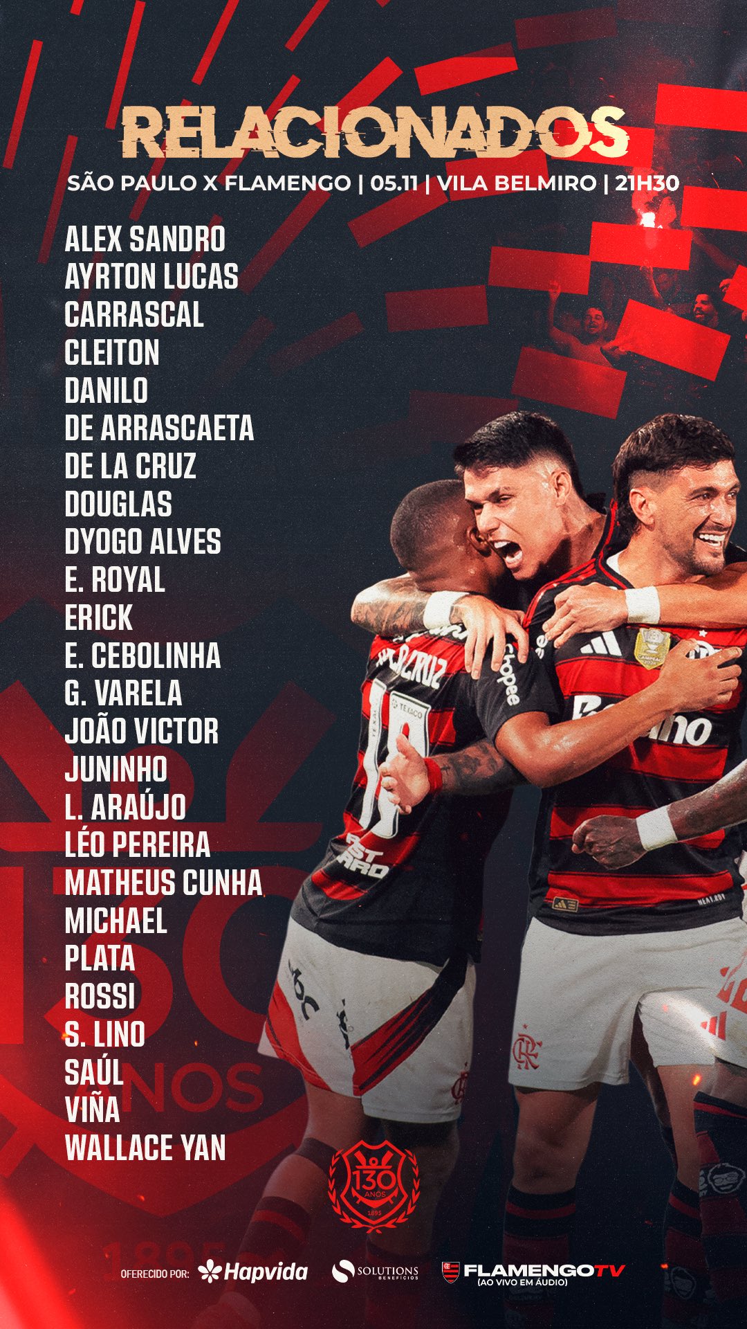 Flamengo ma dobrą wiadomość na liście powołanych na mecz z São Paulo, który odbędzie się w nocy ze środy na czwartek na stadionie Vila Belmiro w ramach 32. kolejki Campeonato Brasileiro. Jorge Carrascal pojechał z drużyną i jest do dyspozycji Filipe Luísa. Do składu wraca również Éverton Cebolinha.