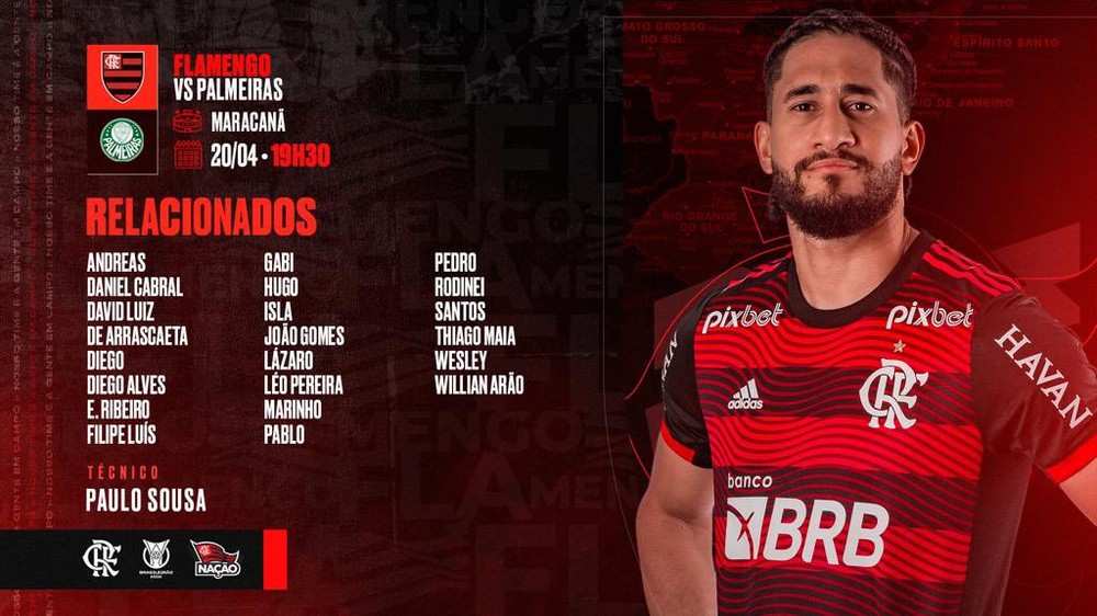 Pablo to nowość Flamengo wśród zawodników powołanych na środowe spotkanie przeciwko Palmeiras, które zostanie rozegrane na stadionie Maracanã w ramach 4. kolejki Brasileirão. Nieco ponad miesiąc po tym, jak został zakontraktowany, a następnie na pierwszym treningu doznał kontuzji przyśrodkowego więzadła pobocznego prawego kolana, obrońca jest dostępny dla trenera Paulo Sousa. Niespodzianką na liście jest młody Daniel Cabral.