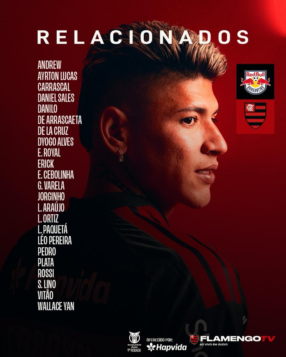 Gonzalo Plata jest nowością na liście zawodników powołanych przez Flamengo na mecz z Red Bull Bragantino, który odbędzie się w nocy z czwartku na piątek na stadionie Cícero de Souza Marques w Bragança Paulista w ramach 9. kolejki Campeonato Brasileiro. Skrzydłowy został wcześniej skreślony ze spotkania z Corinthians przez trenera Leonardo Jardima.