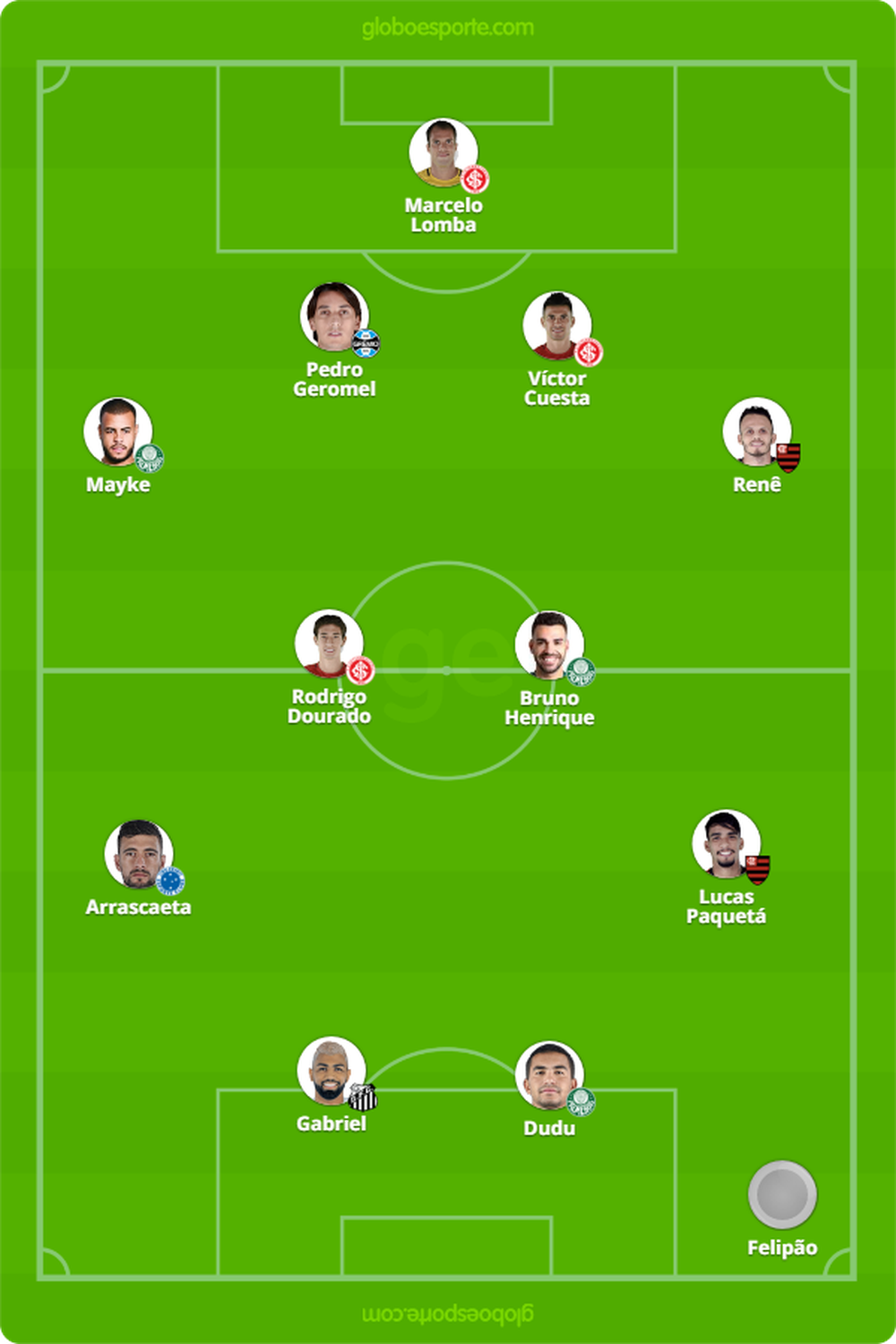 Verdão mają trzech swoich zawodników i trenera drużyny utworzonej przez głosowanie dziennikarzy i samych piłkarzy. Trzeci w ligowej tabeli Internacional ma trzech przedstawicieli, a wicemistrz Flamengo dwóch, a bramka Évertona Ribeiro przeciwko Cruzeiro na stadionie Mineirão została uznana najpiękniejszym trafieniem sezonu. Po jednym ze swoich przedstawicieli ma także Grêmio, Cruzeiro i Santos.