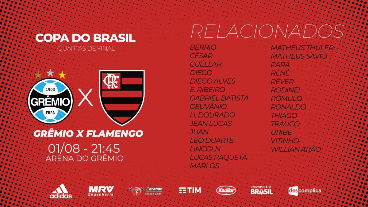 Flamengo będzie miało nowości w kadrze na środowe pierwsze ćwierćfinałowe spotkanie Copa do Brasil przeciwko Grêmio. Poza obecnością nowo pozyskanego Vitinho, trener Maurício Barbieri zabrał do Porto Alegre również Orlando Berrío i Williana Arão.