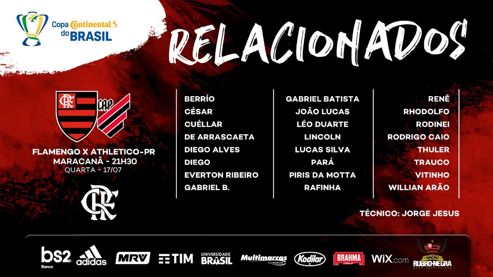 Z powodu skręcenia prawej kostki, napastnik Bruno Henrique nie znalazł się na liście powołanych przez Flamengo na środowe rewanżowe ćwierćfinałowe spotkanie Copa do Brasil przeciwko Athletico. Faworytem do zastąpienia drugiego najlepszego strzelca Rubro-Negro w tym sezonie jest Vitinho. Inną opcją jest młody Lincoln.